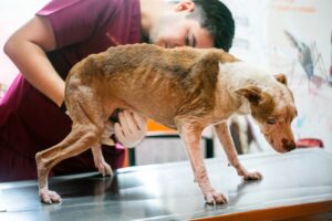 At first sight, his condition was heart-wrenching. Malnutrition and sarcoptic mange were evident, but his suffering didn’t stop there. A visit to the vet revealed he was also battling erlichia and anaplasma, anemia, gingivitis, a broken hip, and a penile tumor later determined to be transmissible venereal tumor (TVT).