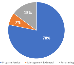 This pie chart provides a snapshot of how we allocate resources to fulfill our mission. The three categories represent different facets of our organization and how we report expenses to authorities:
