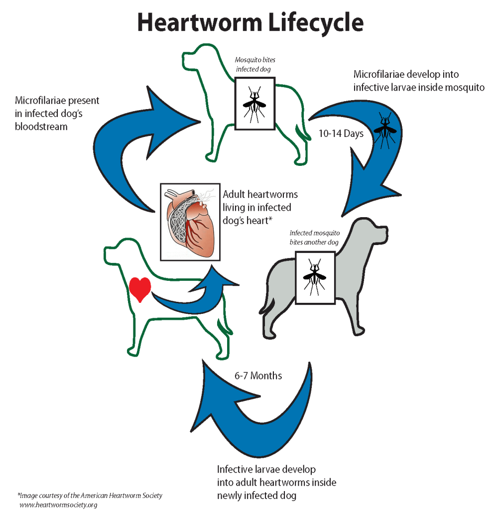 This infographic portrays the life cycle of the heartworm.
